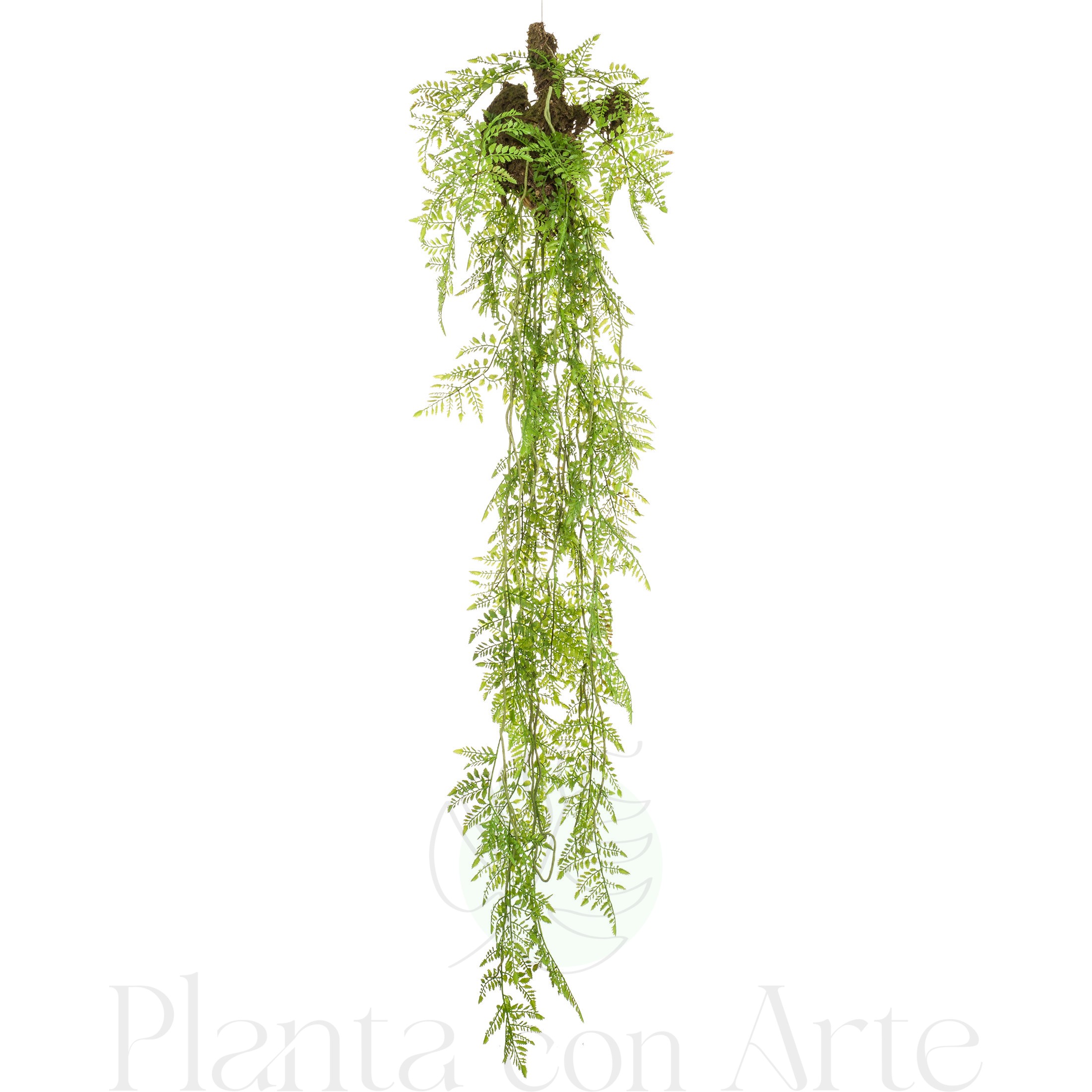 Planta de HELECHO artificial con Tronco colgante con alto nivel de realismo para decoración en interior.