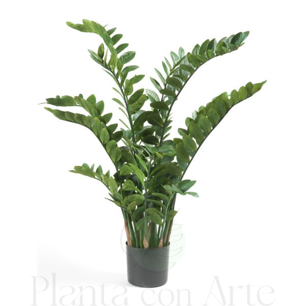 Esta PLANTA ZAMIOCULCA con 116 hojas es una planta semi suculenta. Sus hojas están compuestas por un tallo grueso y foliolos redondos relativamente gruesos de color verde oscuro con un característico brillo que parece cera. Incluye macetero básico. No requiere mantenimiento.